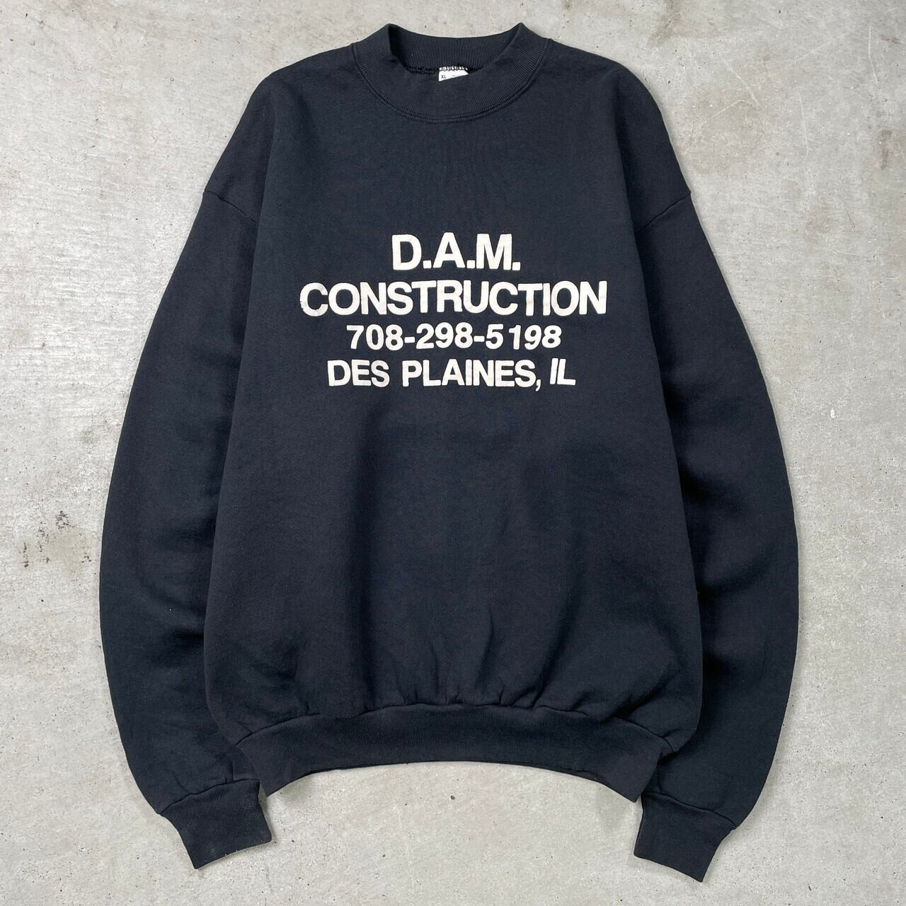 ■90年代 USA製 D.A.M CONSTRUCTION プリント スウェットシャツ メンズXL 古着 90s VINTAGE ヴィンテージ トレーナー ダム 黒色【スウェット】/ブラック