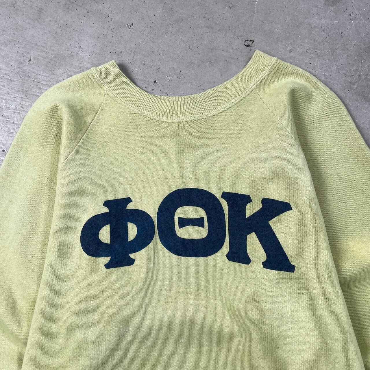 90年代 フラタニティ ラグランスウェットシャツ カレッジプリント メンズXL 古着 90s ヴィンテージ VINTAGE アメカジ トレーナー フェード 黄緑色【スウェット】/グリーンSS30