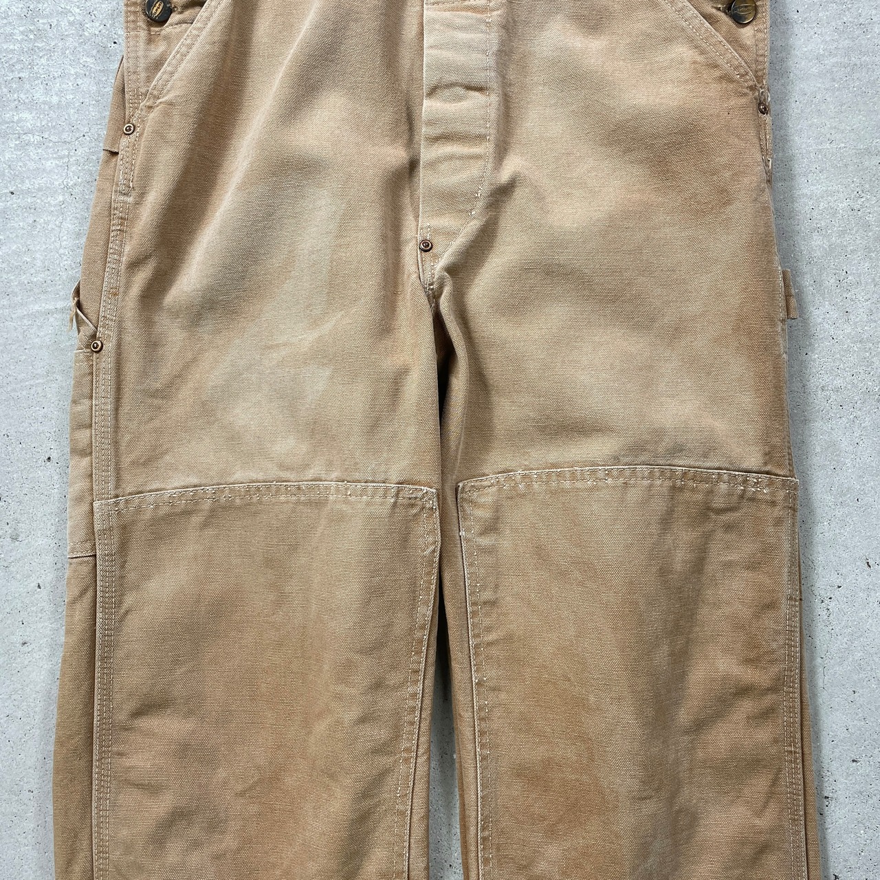 ■60年代 Carhartt カーハート ダック地 オーバーオール ダブルニー メンズW32相当 古着 60s VINTAGE ヴィンテージ ボタンフライ 山ポケ キャメル【オーバーオール】/ベージュ