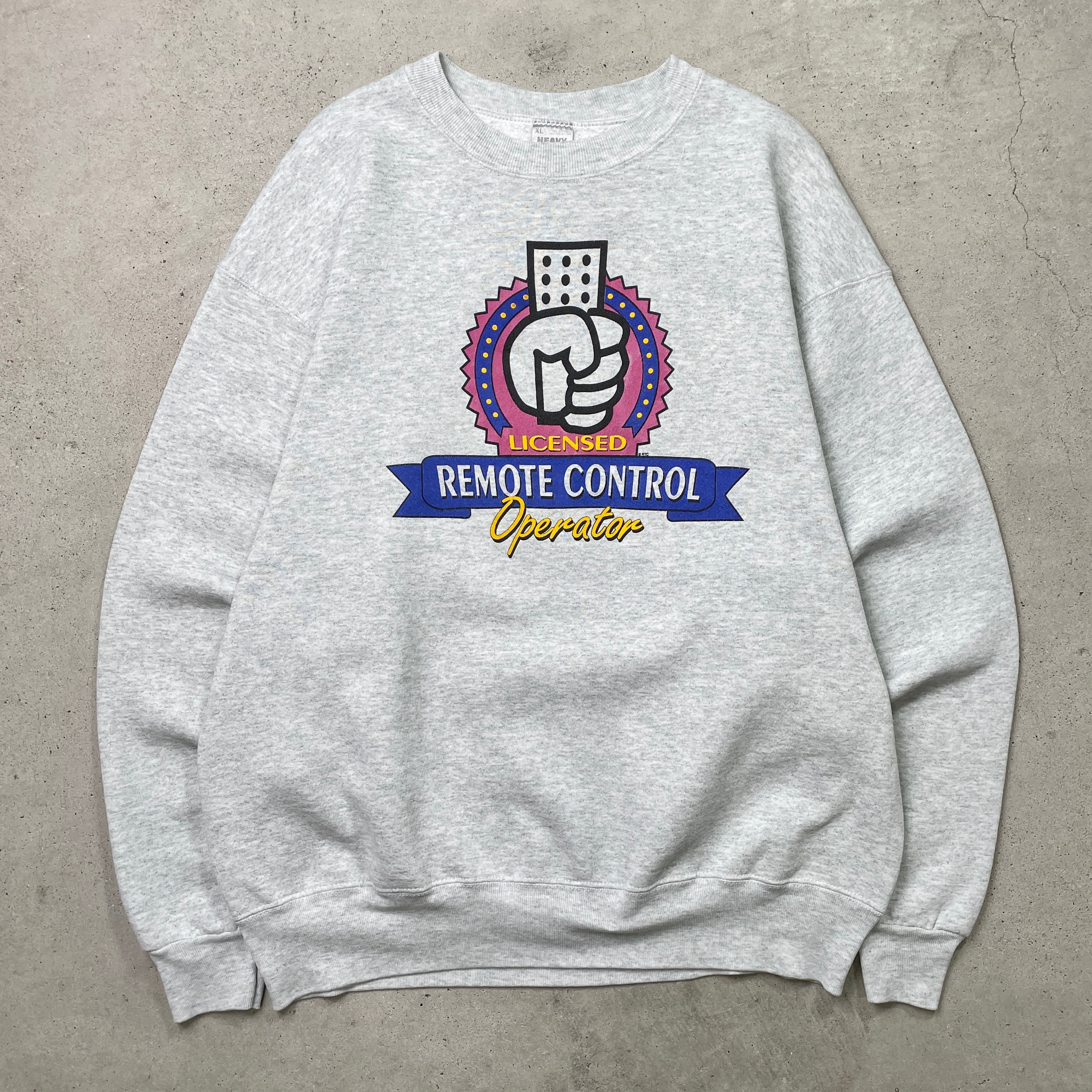 90年代 USA製 REMOTE CONTROL Operator 企業プリント スウェットシャツ メンズXL 古着 90s アメカジ ヴィンテージ VINTAGE トレーナー アドバタイジング ライトグレー【スウェット】/グレーSS30