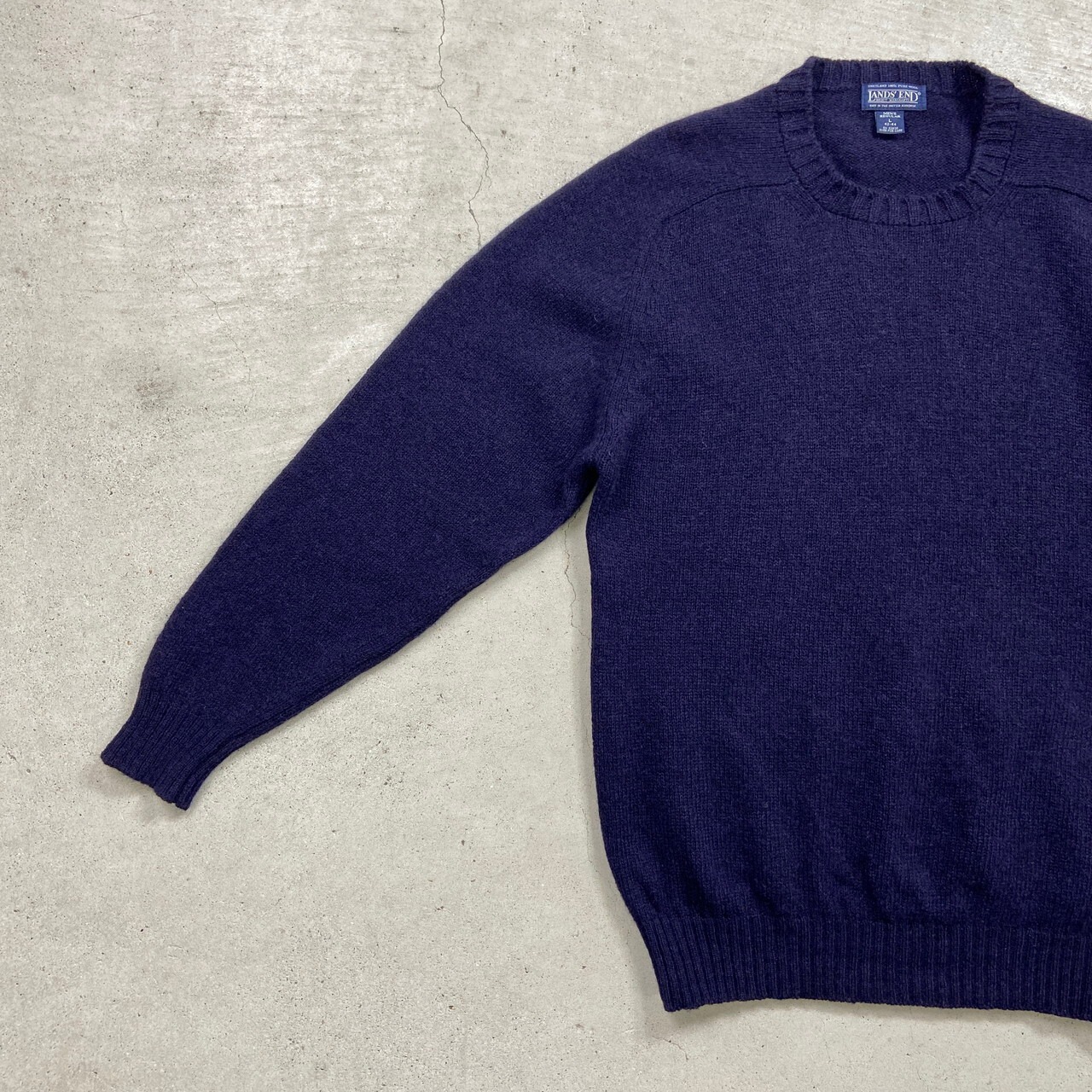 ■90年代 イギリス製 LANDS'END ランズエンド ウールニットセーター シェットランドセーター メンズL 古着 90s VINTAGE ヴィンテージ 紺色 【ニットセーター】/ネイビー