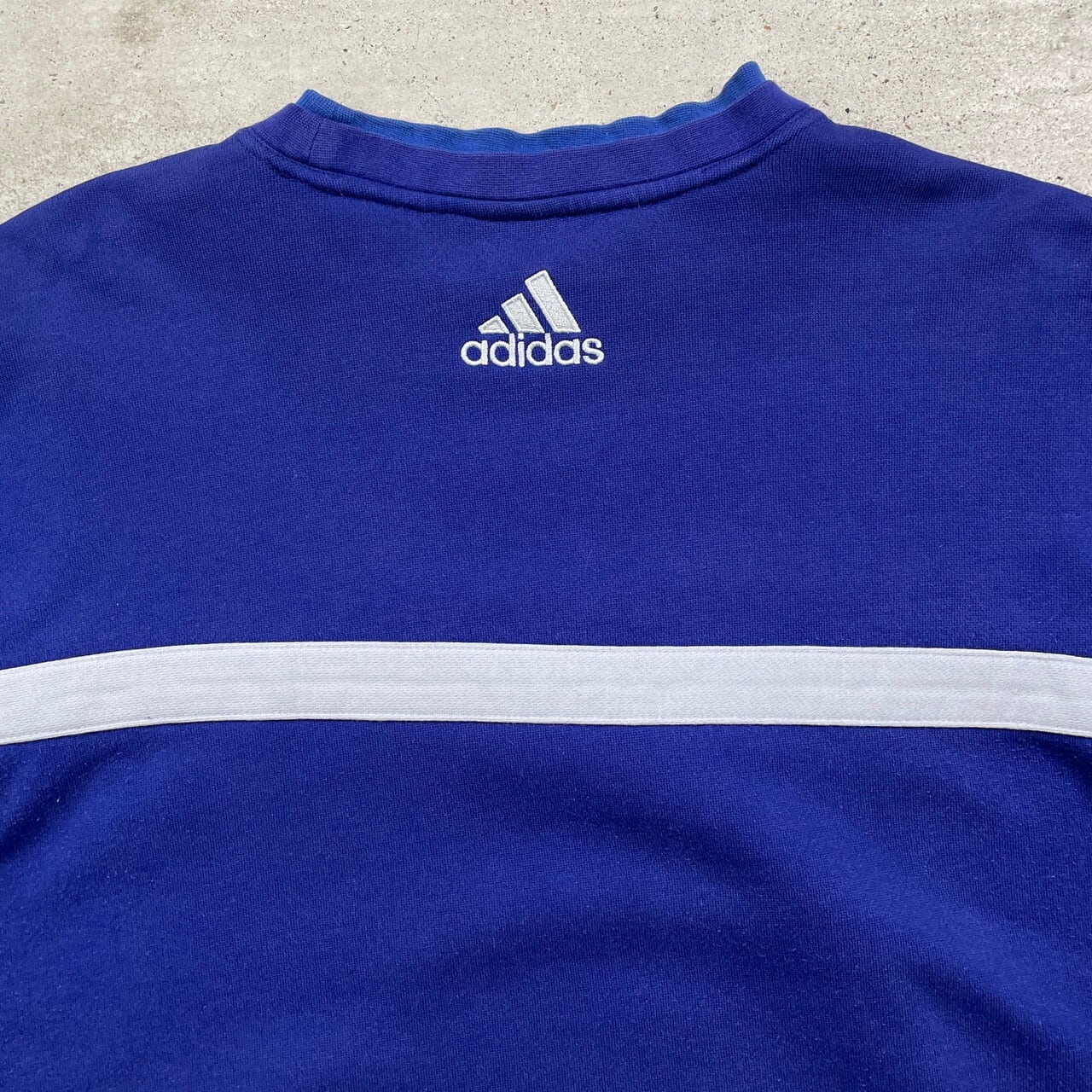90年代 USA製 adidas アディダス スウェットシャツ パフォーマンスロゴ 袖ライン メッシュ切り替え メンズL相当 古着 90s ヴィンテージ VINTAGE トレーナー 裾ドローコード 青紫色 青色 ライトグレー 灰色【スウェット】/パープルSS30