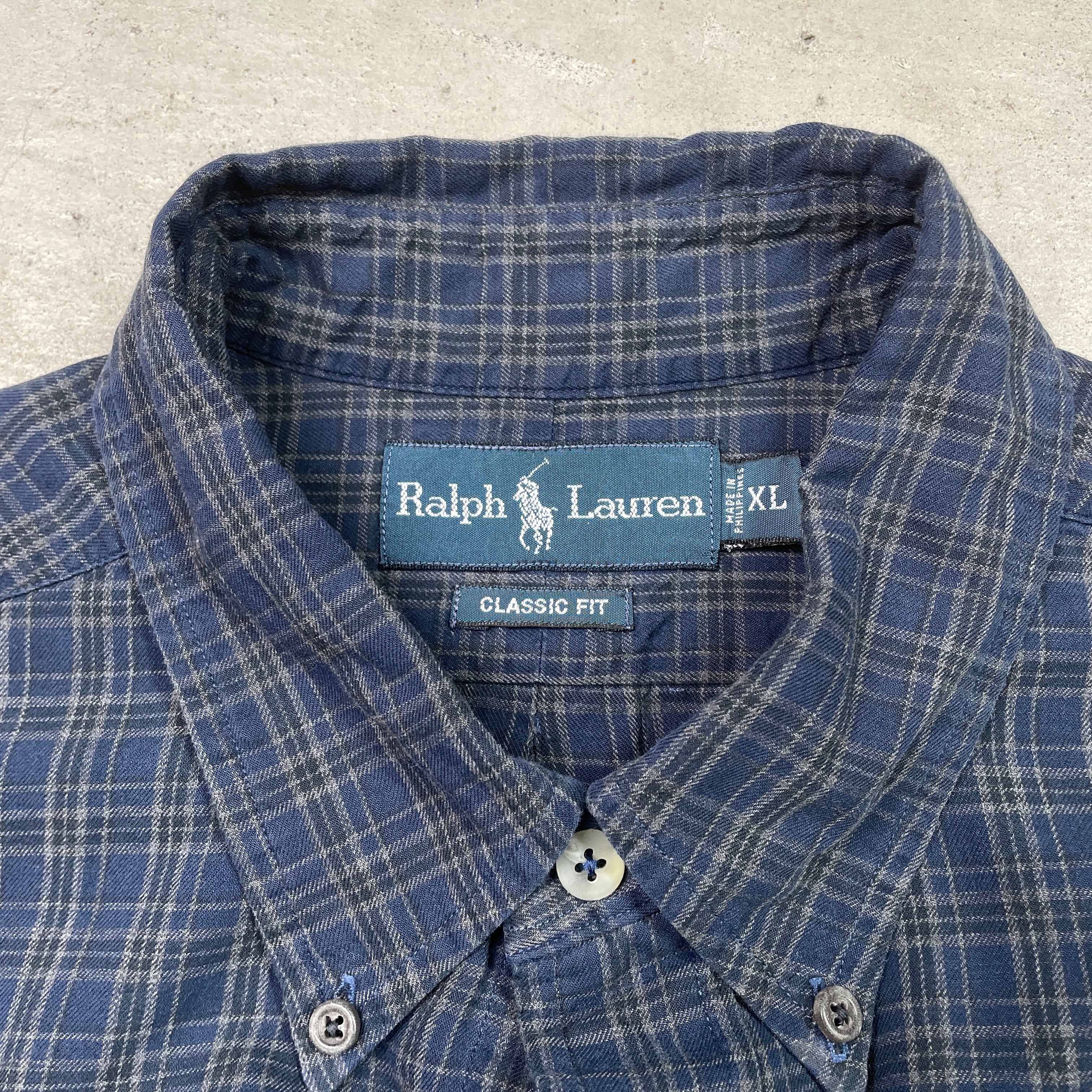 90年代 Ralph Lauren ラルフローレン CLASSIC FIT チェックシャツ メンズXL 古着 90s ヴィンテージ VINTAGE B.D ボタンダウンシャツ 大きいサイズ BIGSIZE ネイビー【長袖シャツ】/マルチカラーSS30