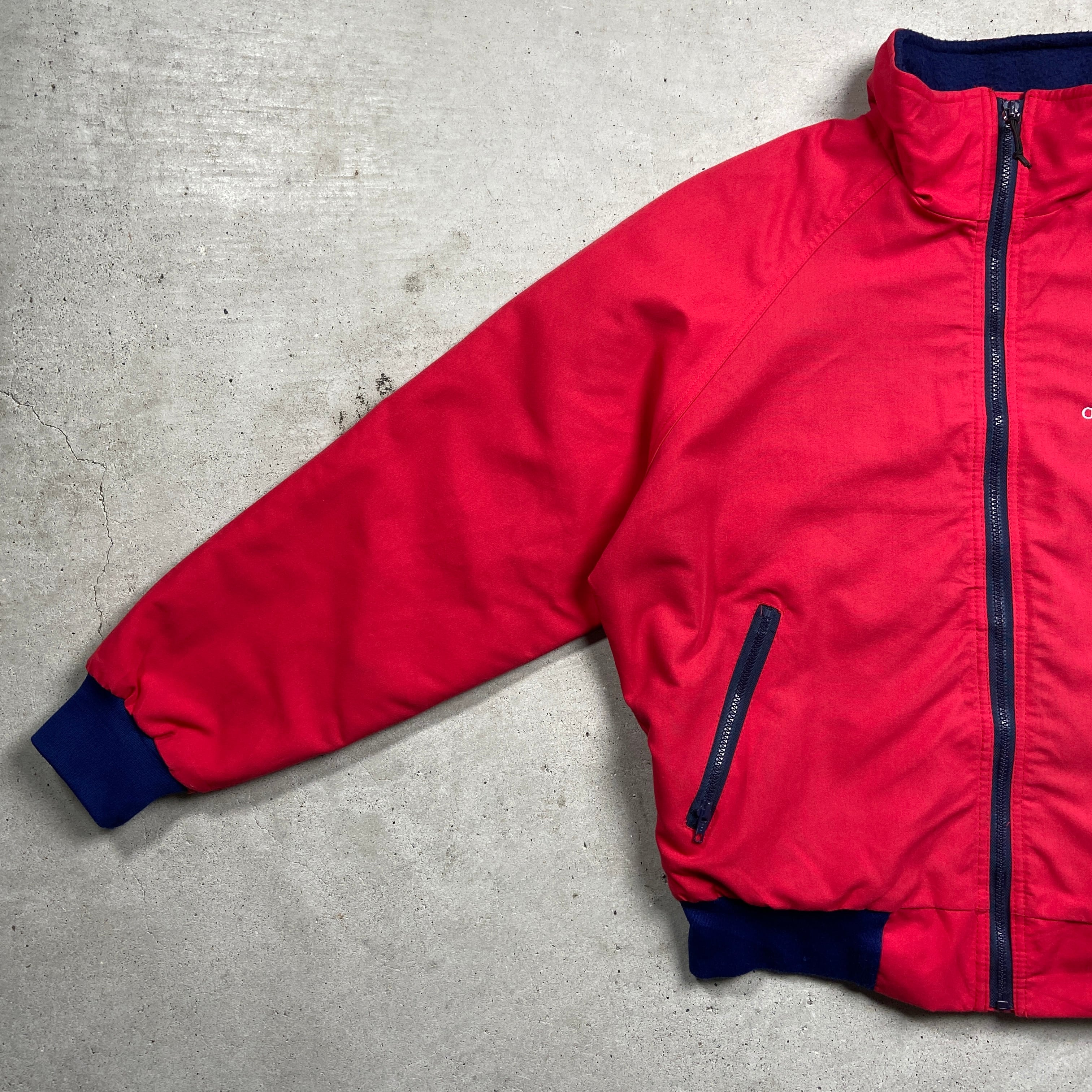80~90年代 USA製 企業ロゴ刺繍 コットンシェルジャケット Polarfleece メンズL 古着 80s 90s アメカジ VINTAGE ヴィンテージ ハイネック 赤色【アウトドアジャケット】/レッドSS30