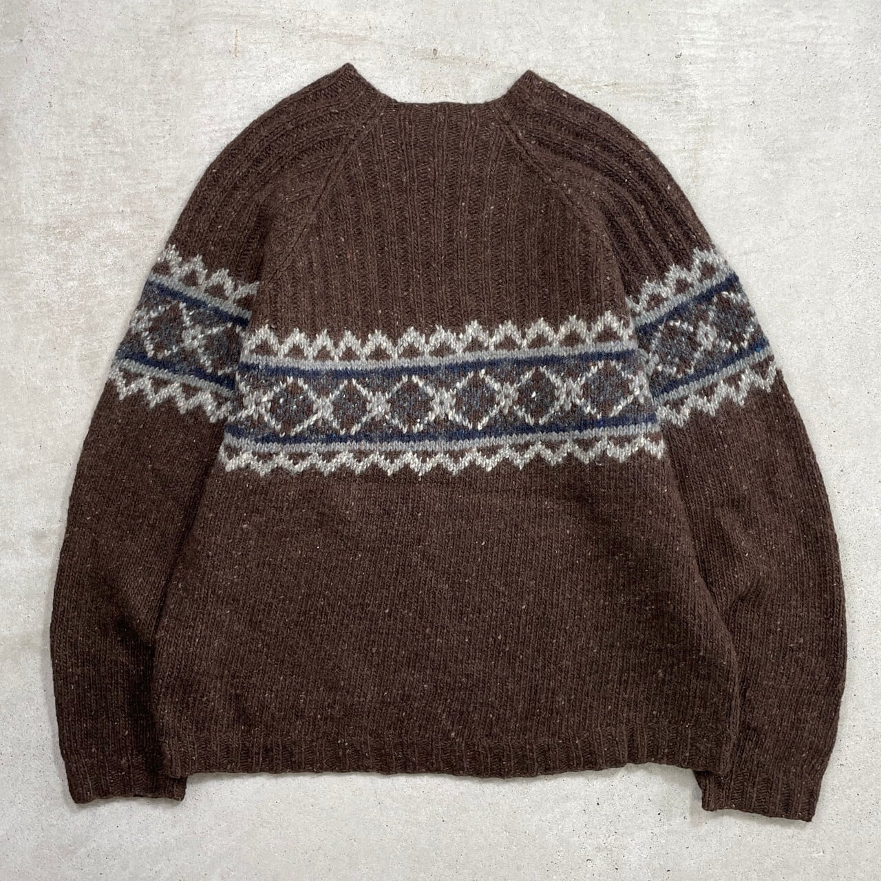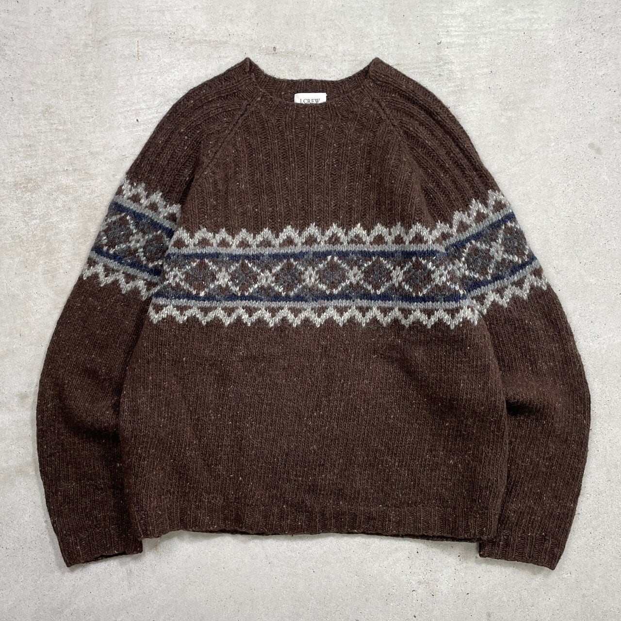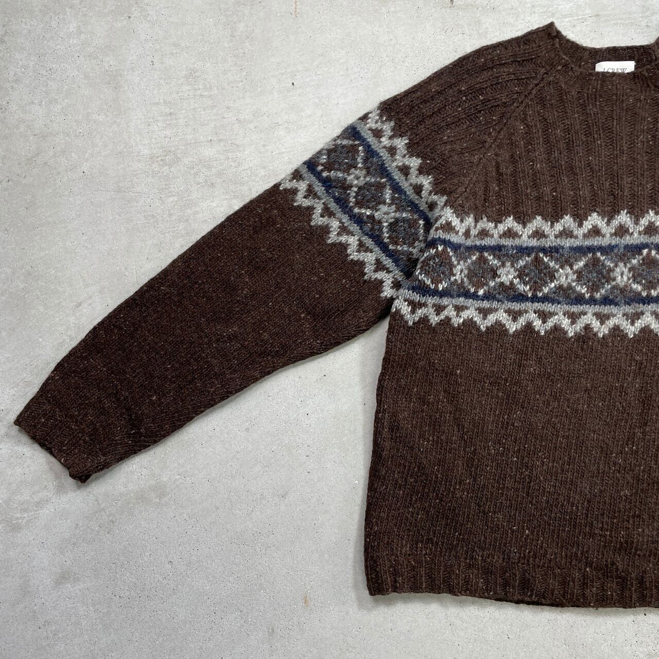 00年代 J.CREW ジェイクルー ノルディック柄 ウールニットセーター メンズXL 古着 ラグランスリーブ 00s ビンテージ ヴィンテージ Y2K ローゲージニット 茶色【ニットセーター】/ブラウンSS30