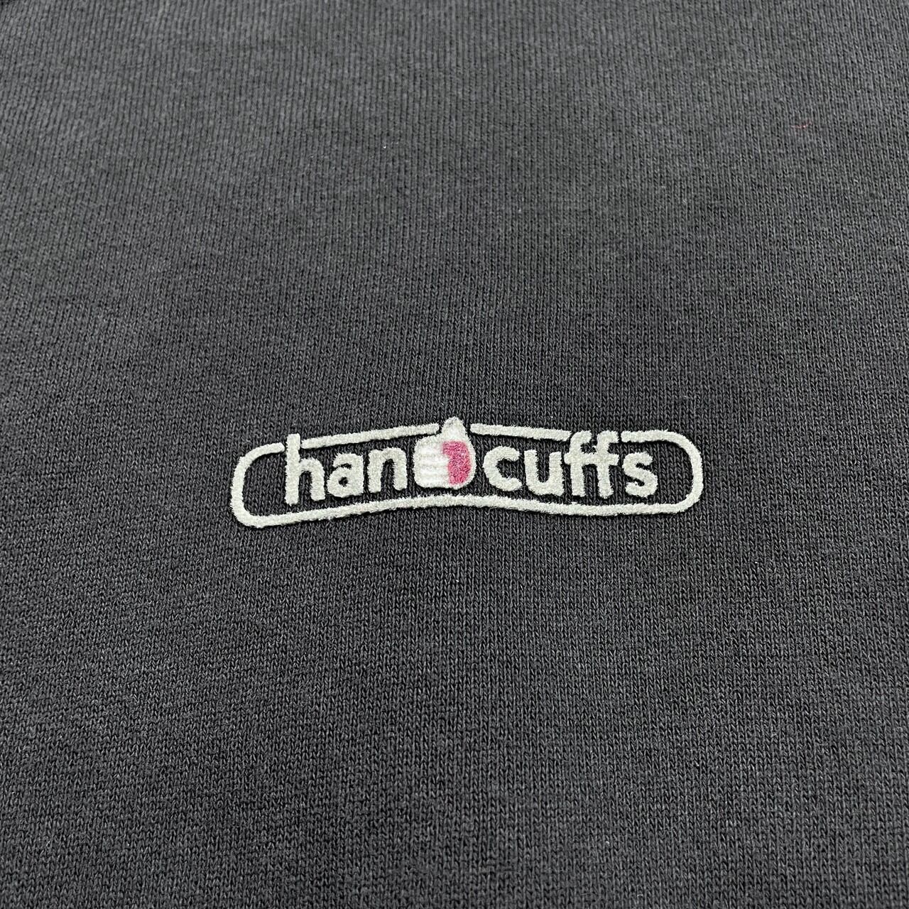 90年代 HANDCUFFS ハンドカフス スウェットシャツ グローブ付き ワンポイントロゴ フロッキープリント メンズM 古着 90s ヴィンテージ VINTAGE アメカジ フェードブラック 墨黒【スウェット】/ブラック【SS30-AW】