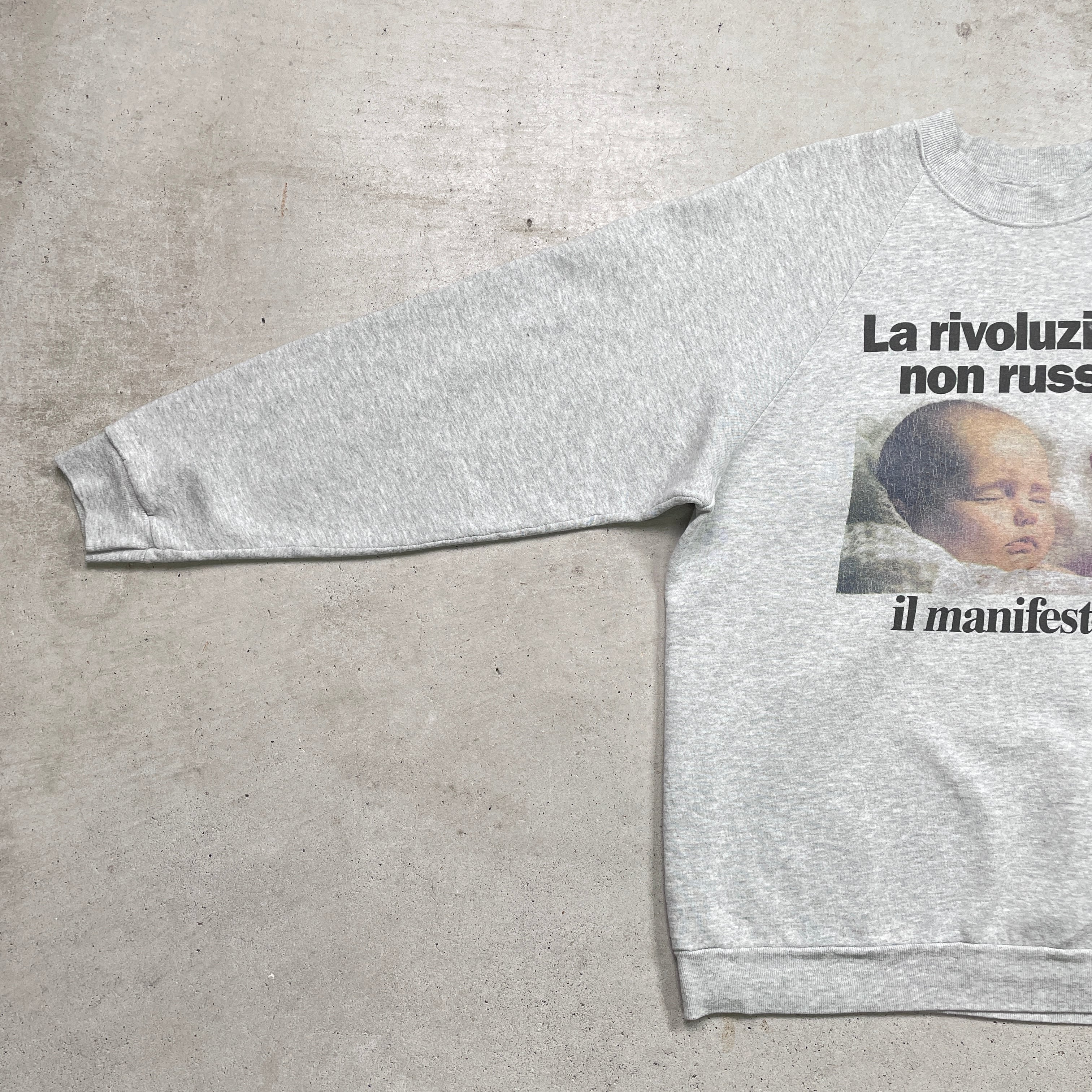 90年代〜 フォトプリントラグランスウェットシャツ メッセージ メンズXL 古着 90s ヴィンテージ VINTAGE 赤ちゃんプリント トレーナー 灰色【スウェット】/グレーSS30