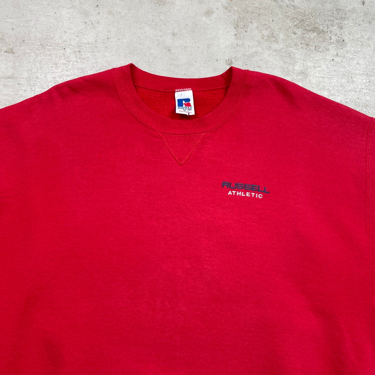 00年代 RUSSELL ATHLETIC ラッセル アスレチックス ワンポイントロゴ刺繍 スウェットシャツ メンズXL 古着 00s Y2K VINTAGE ヴィンテージ アメカジ トレーナー 前Vガゼット 赤色【スウェット】/レッドSS30