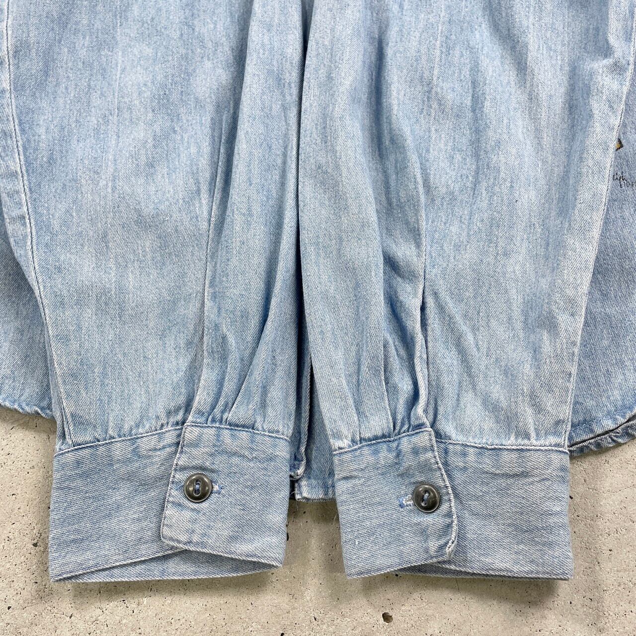 90年代 USA製 MICKEY UNLIMITED ミッキーマウス 長袖 デニムシャツ レディースM 古着 90s VINTAGE ヴィンテージ キャラクター刺繍 DISNEY ディズニー 青【長袖シャツ】/ブルーSS30