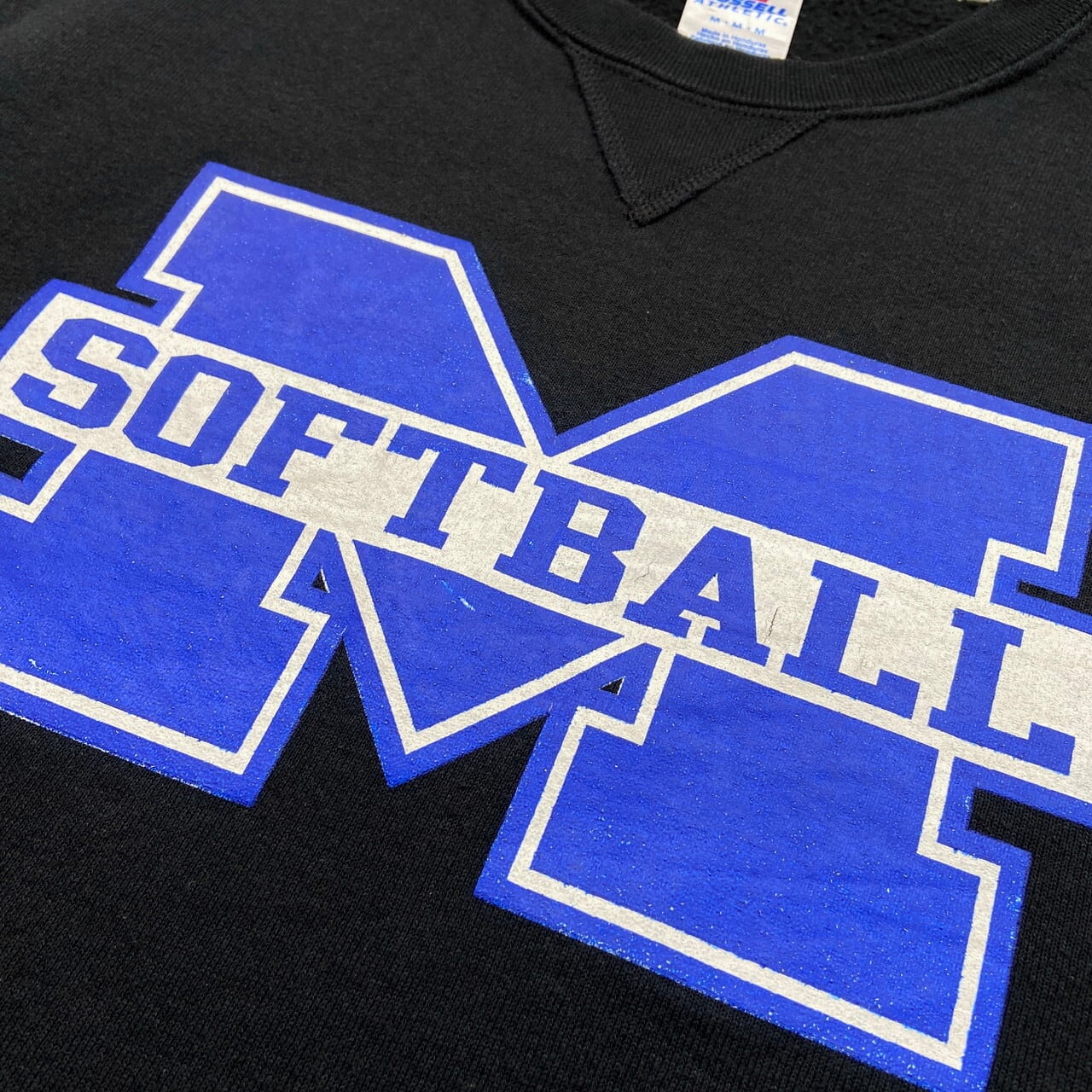 ■RUSSELL ATHLETIC ラッセル アスレチックス スウェットシャツ カレッジチームプリント メンズM 古着 アメカジ トレーナー 黒色【スウェット】/ブラック