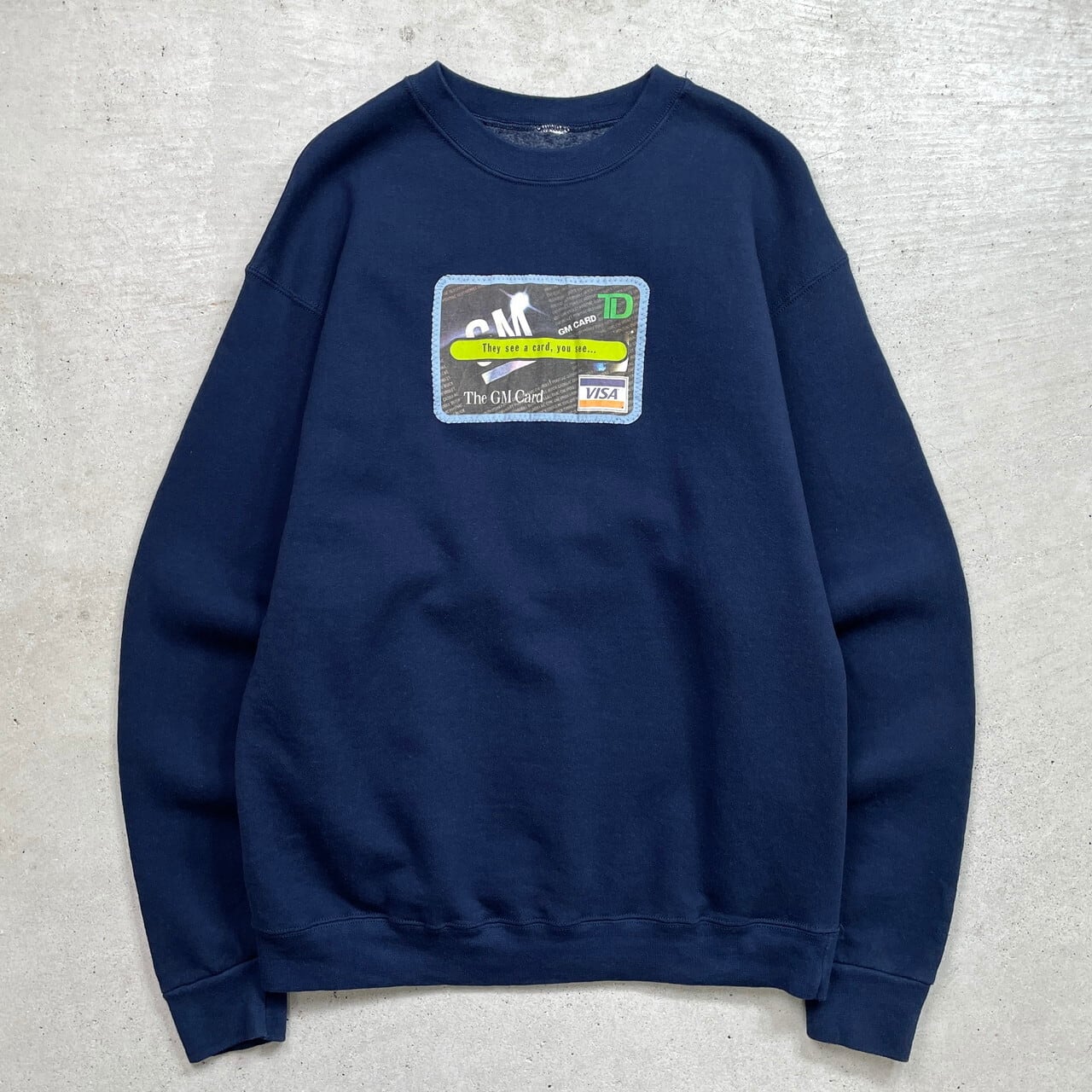 ■VISA The GM Card 企業ロゴワッペン スウェットシャツ メンズXL相当 古着 アドバタイジング クレジットカード ハンドメイド 紺色【スウェット】/ネイビー